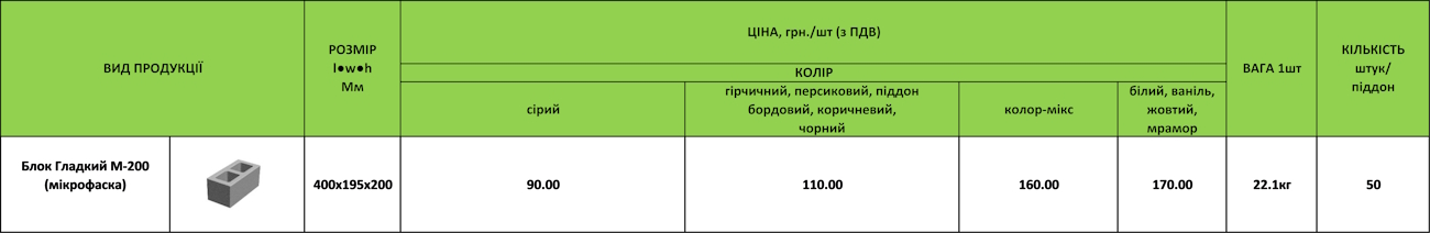 Придбайте гладкий декоративний блок 400×200×200 мм у перевіреного виробника з доставкою по всій Україні. Гарантована якість, міцність і відповідність стандартам — основа нашої продукції.