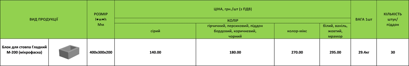 ЦІНА Блок гладкий для стовпа 400х300х200