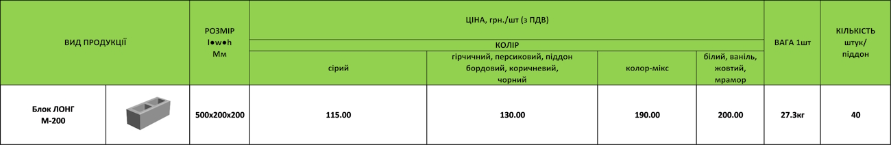 Блок лонг 500х200х200 є ідеальним вибором для будівництва завдяки своїм габаритам, міцності та енергоефективності. Його застосування забезпечує швидке, якісне та економічне зведення стін та інших конструкцій. Незалежно від типу будівлі — житлового будинку, комерційної споруди або огорожі — цей блок стане надійною основою для вашого проекту.
