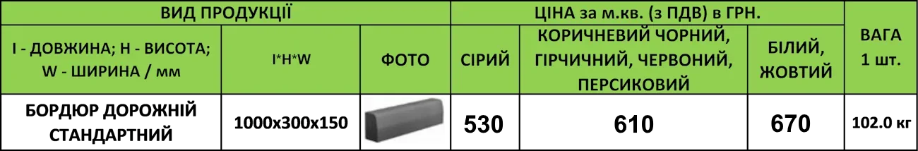 Бордюр дорожній стандартний
