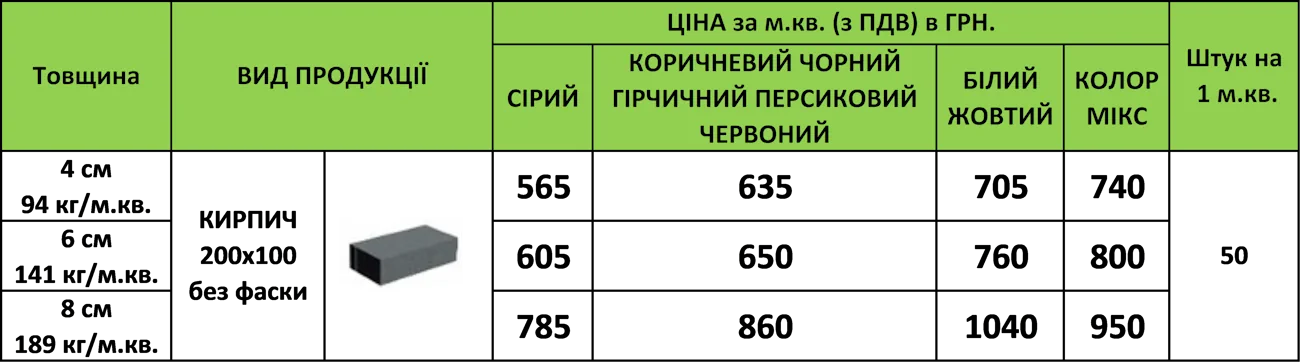 Тротуарна плитка КИРПИЧ 200х100 без фаски