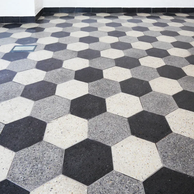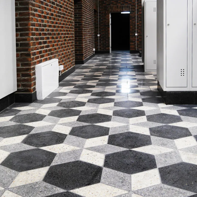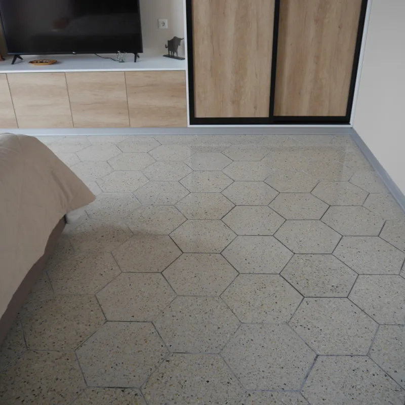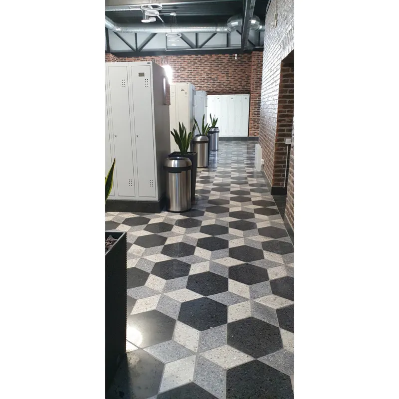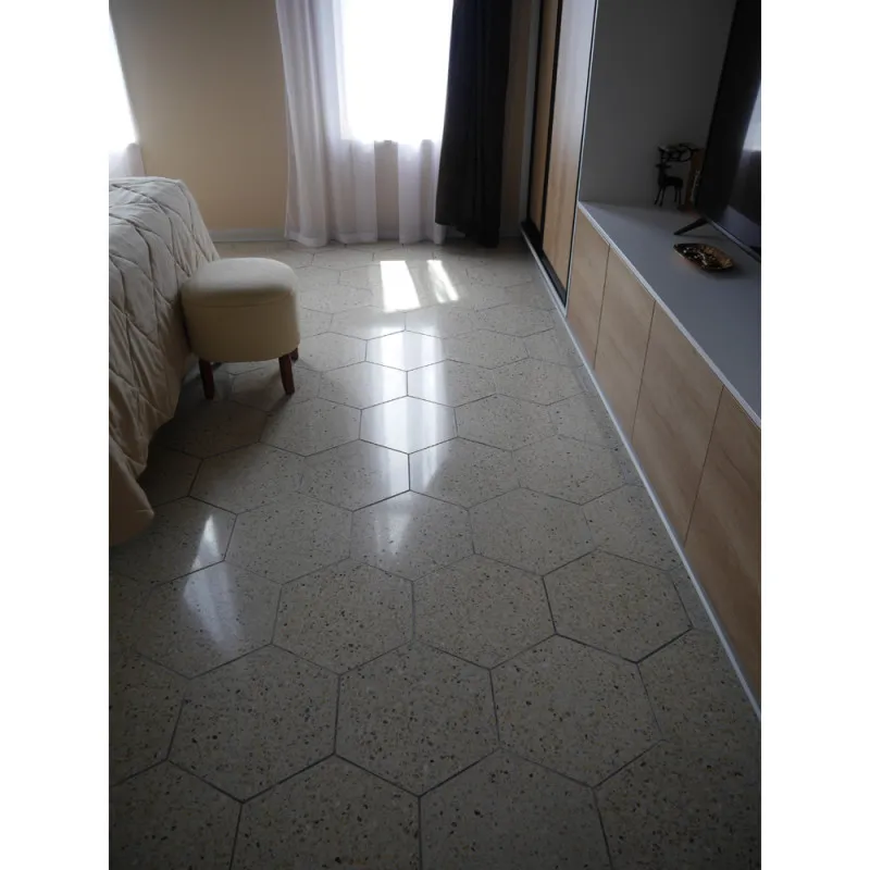 Геометрія у формі бджолиних сот дозволяє створювати сучасні, ритмічні узори без видимих прямих ліній. Це рішення чудово виглядає як у малих просторах, так і в масштабних проєктах.