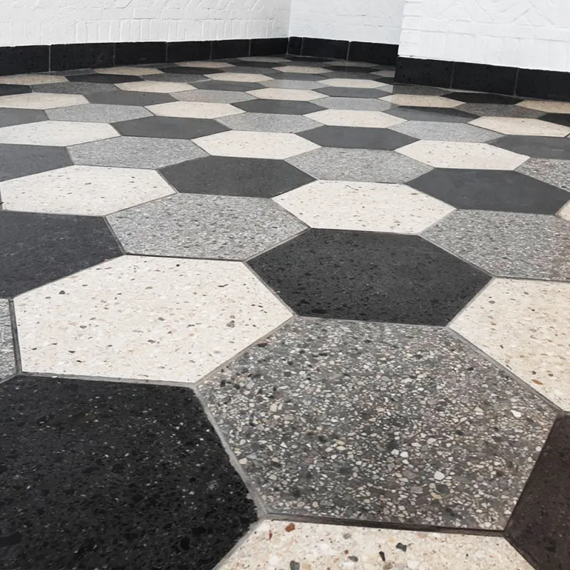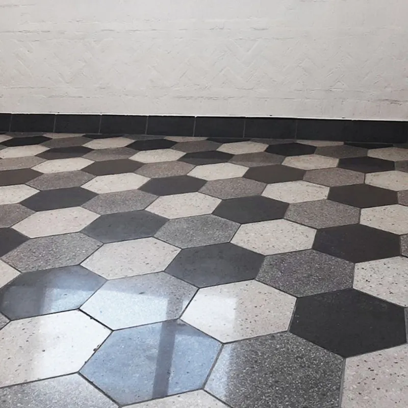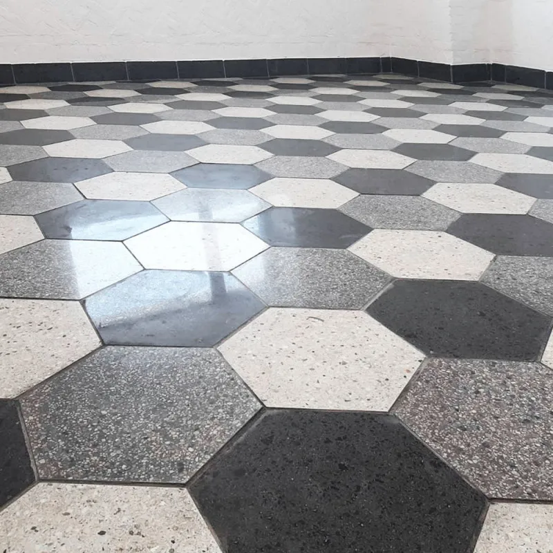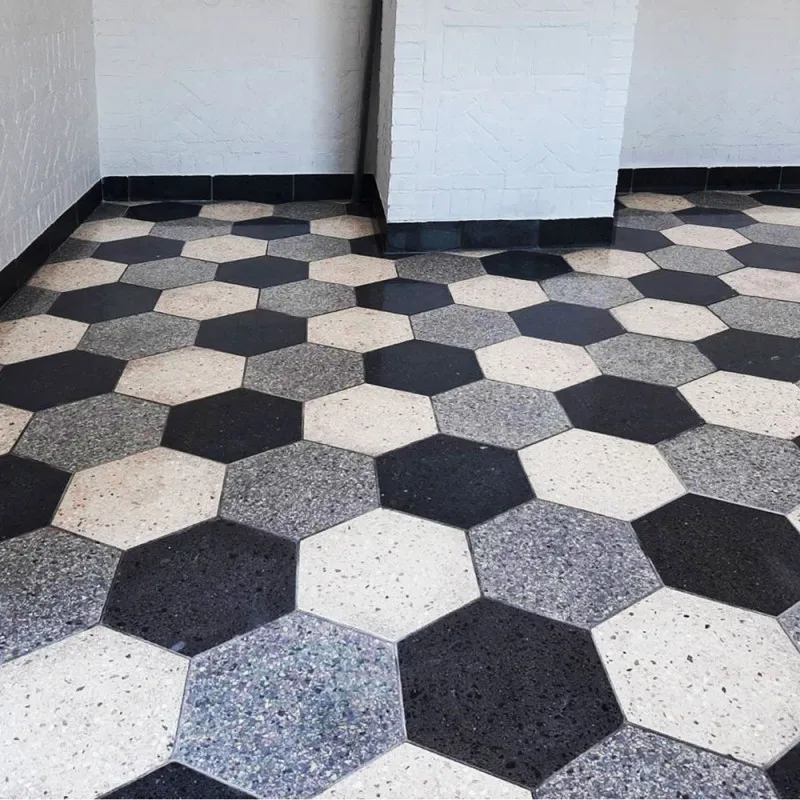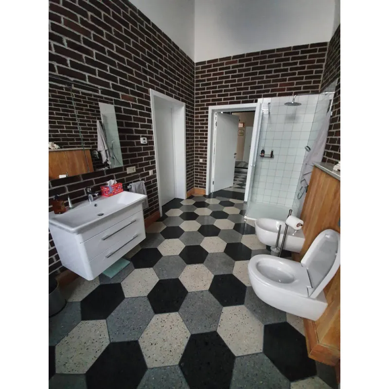 Геометрія у формі бджолиних сот дозволяє створювати сучасні, ритмічні узори без видимих прямих ліній. Це рішення чудово виглядає як у малих просторах, так і в масштабних проєктах.