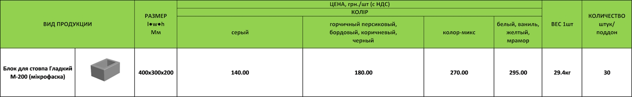 Цена Блок гладкий для столба 400х300х200