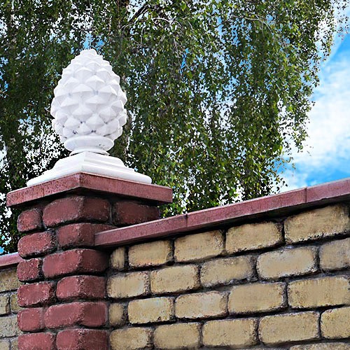 Размеры: 250×120×65 мм и 240×160×90 мм. Используется для оформления заборов в классическом и ретро-стиле, добавляя изысканности экстерьеру.