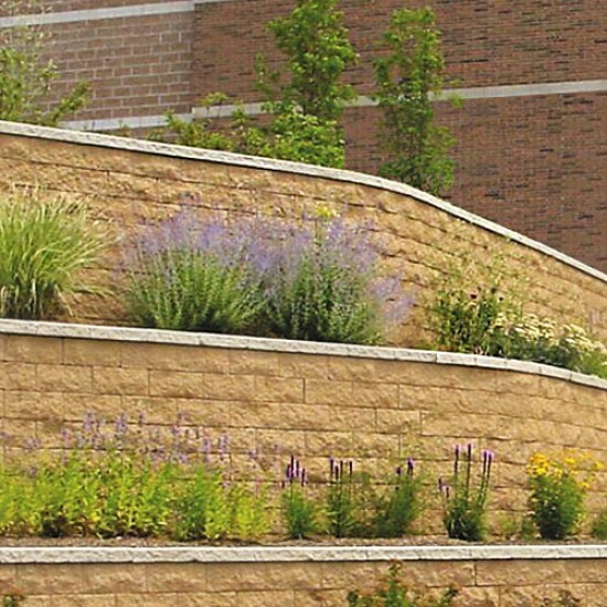 Предназначен для возведения подпорных стен, террас и клумб. Размер — 457/305×305×102 мм. Монтаж возможен без раствора, за счёт специального замкового соединения. Поверхность — декоративная, колотая.