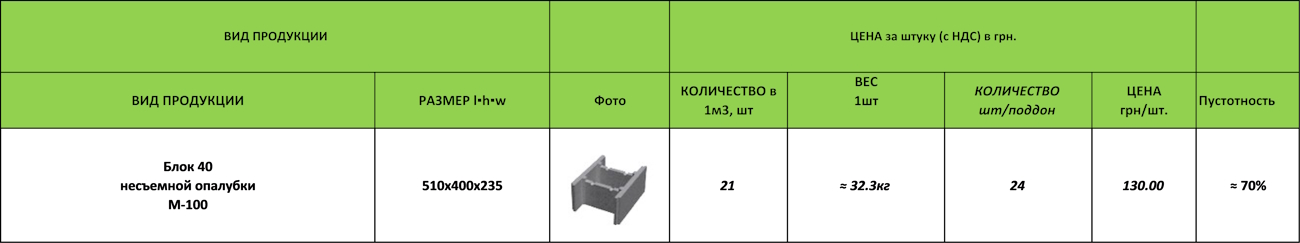 Предлагаем приобрести качественные блоки несъёмной опалубки с доставкой по всей Украине. Вся продукция сертифицирована, изготовлена из высокопрочного бетона и соответствует современным требованиям строительства. Наши менеджеры помогут вам подобрать нужный тип блоков в зависимости от задач проекта. Обращайтесь — стройте надёжно с проверенными материалами!