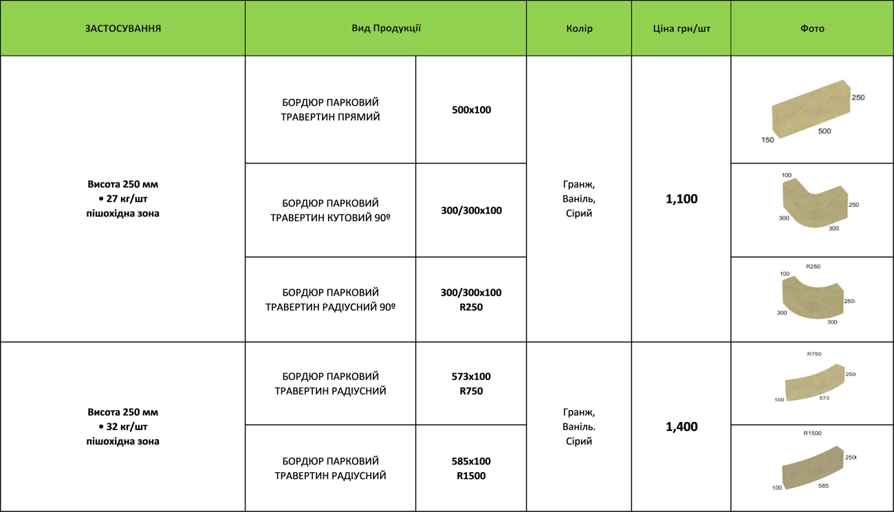 Застосування | Застосовується на дорогах із мінімальним навантаженням (пішохідні, велосипедні доріжки). Встановлюється жорстко на бетонний розчин, служить замком та упором для дорожнього покриття. Дозволяє як піднімати рівень тротуару, так і знижувати відносно лінії газону. |