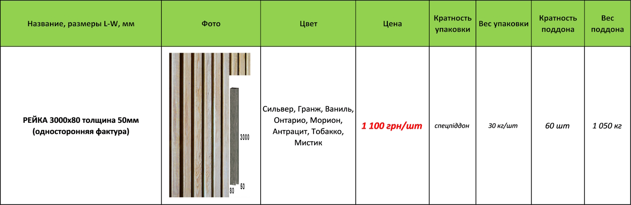 | Размер элемента, мм: | 2000x80x50, 3000x80x50 |
