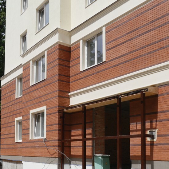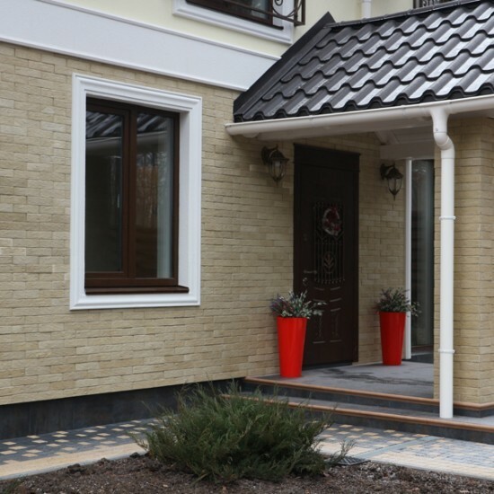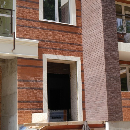 Фактурная поверхность и сложные цветовые переходы имитируют натуральный материал. Цвета «Металлик», «Допио», «Чери», «Монтана» позволяют создать индивидуальный облик фасада и подчеркнуть оригинальность дизайна.