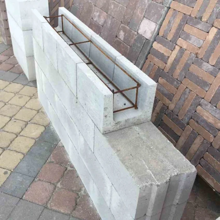 Блок имеет специальный внутренний канал, в который укладывается арматура и заливается бетон. Такая конструкция формирует цельный армированный пояс по всему периметру стен.