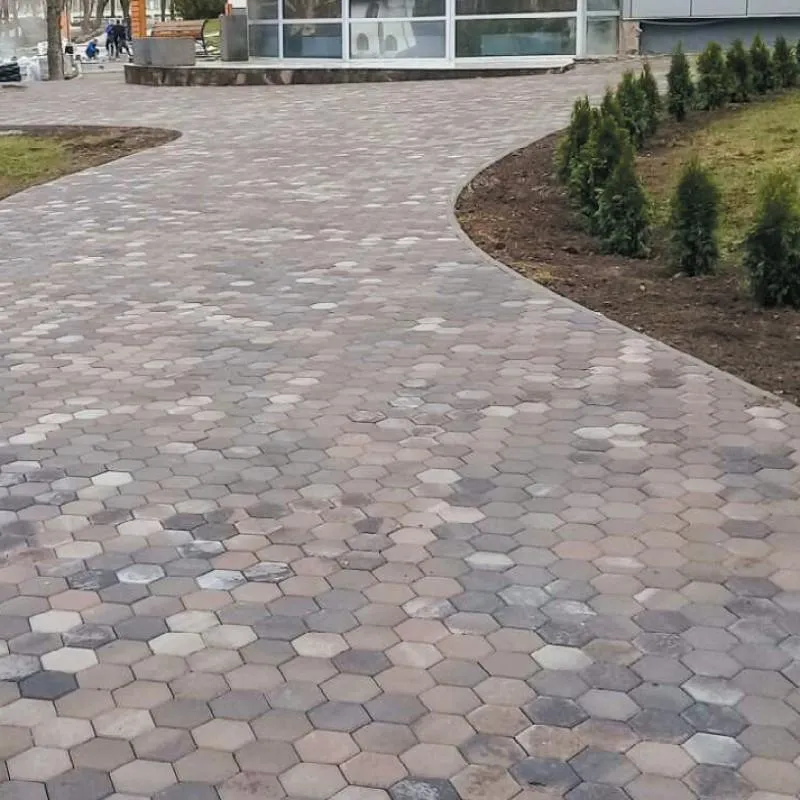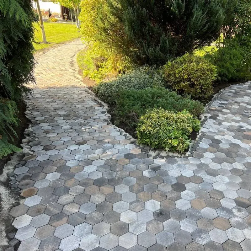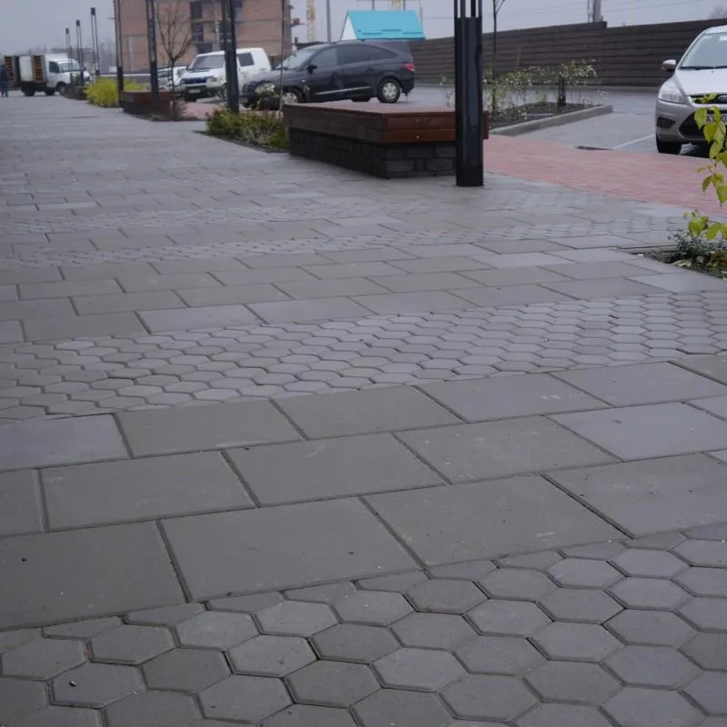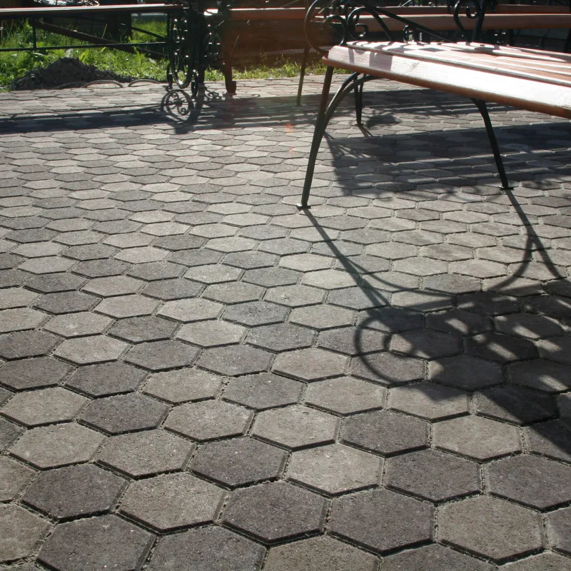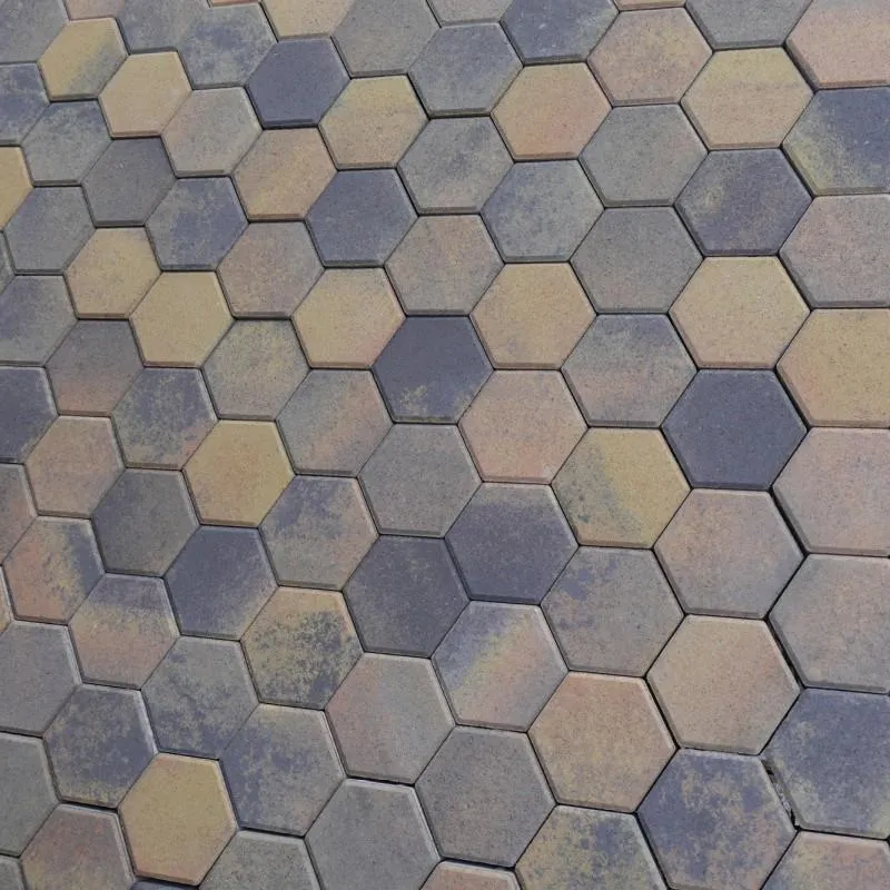 Шестиугольная форма плитки создаёт эффект пчелиных сот, идеально подходящий как для современного ландшафтного дизайна, так и для урбанистических решений. Чёткие грани та фаска обеспечивают аккуратную укладку и выразительную геометрию.