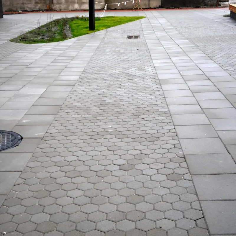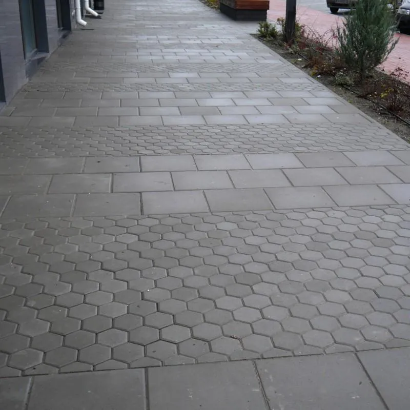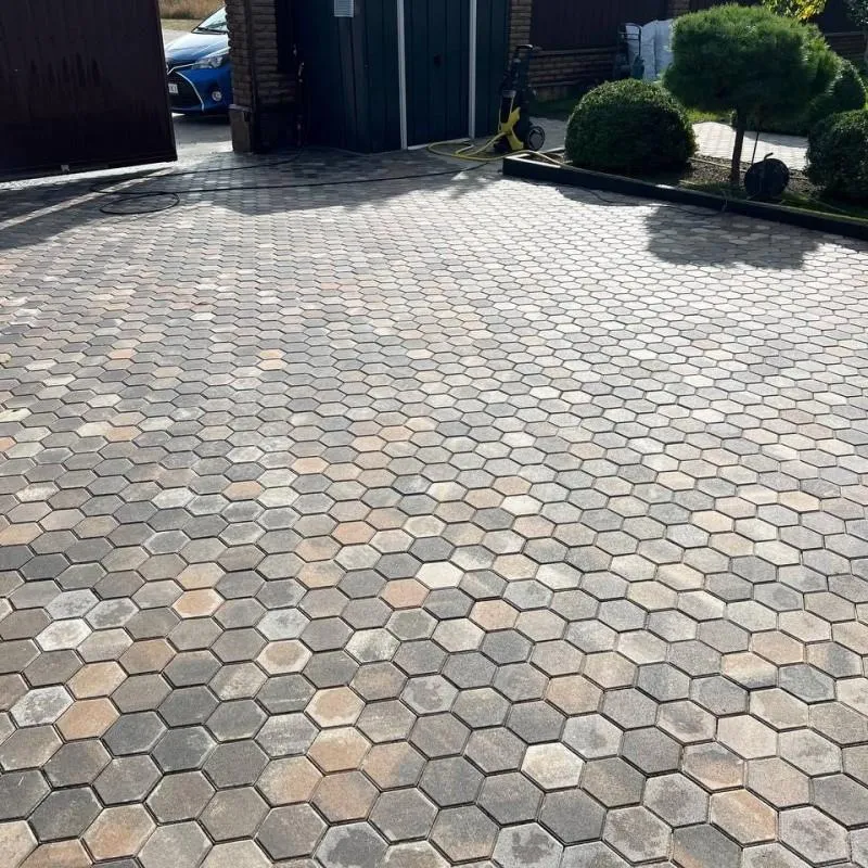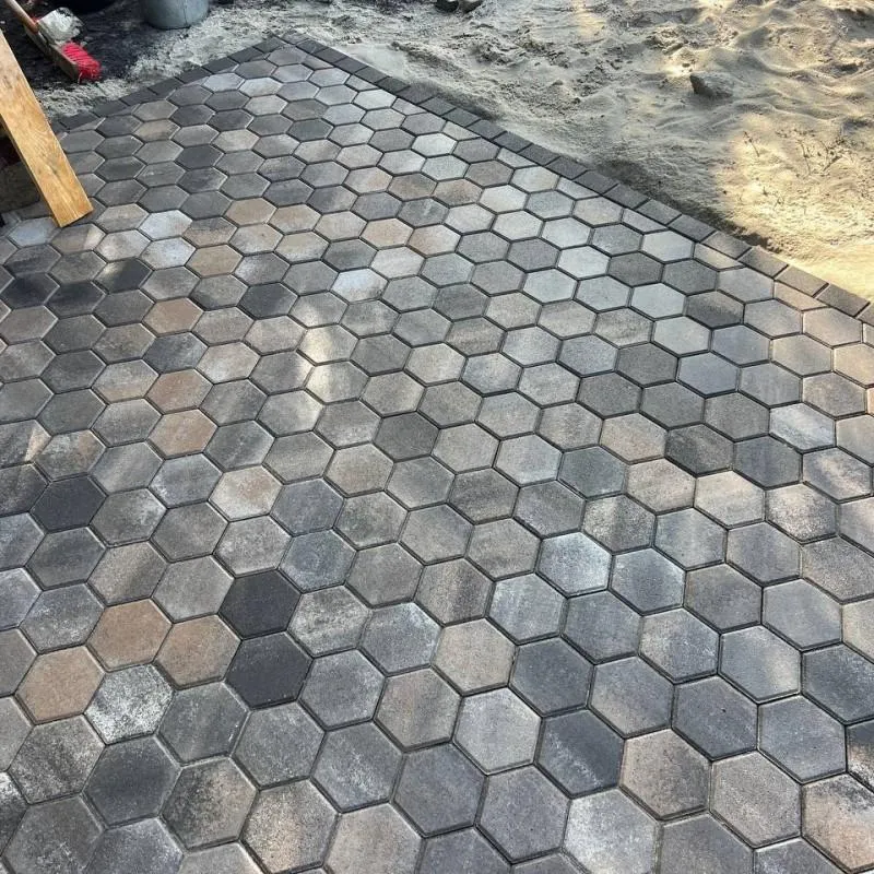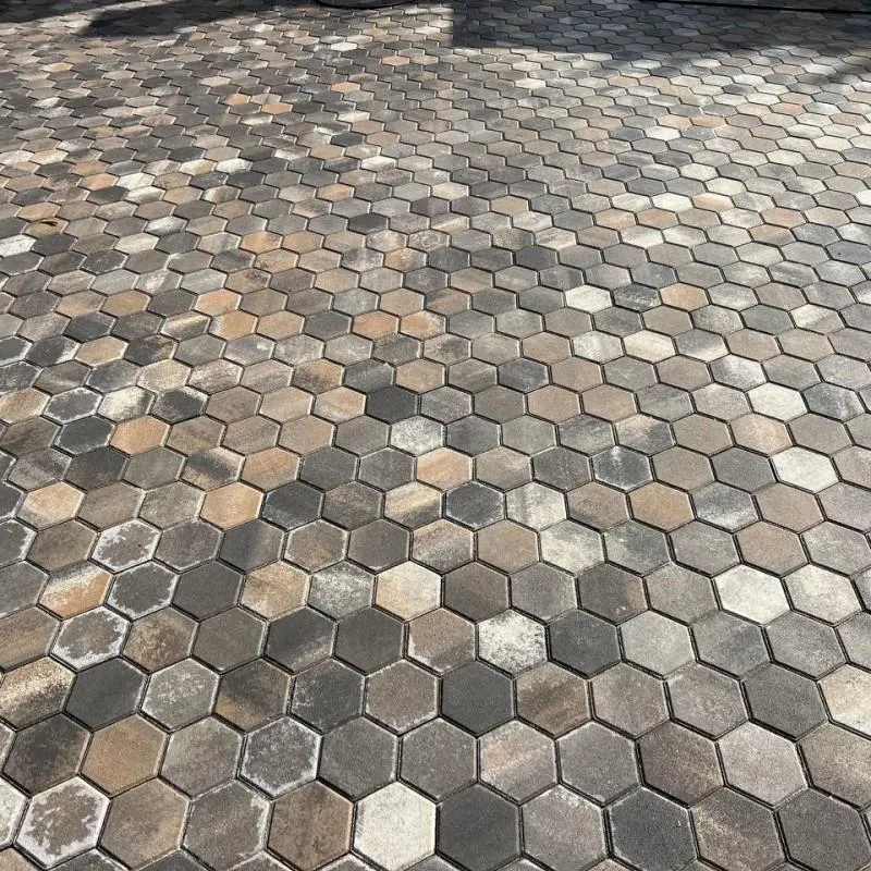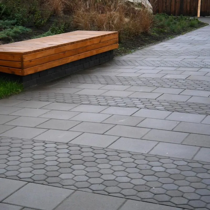 Шестиугольная форма плитки создаёт эффект пчелиных сот, идеально подходящий как для современного ландшафтного дизайна, так и для урбанистических решений. Чёткие грани та фаска обеспечивают аккуратную укладку и выразительную геометрию.