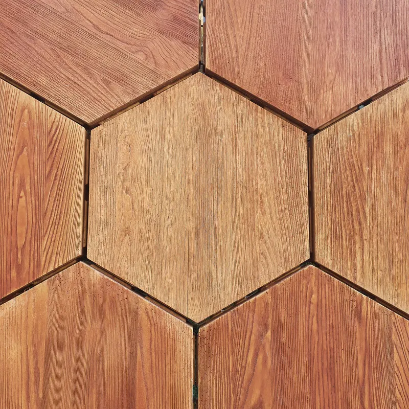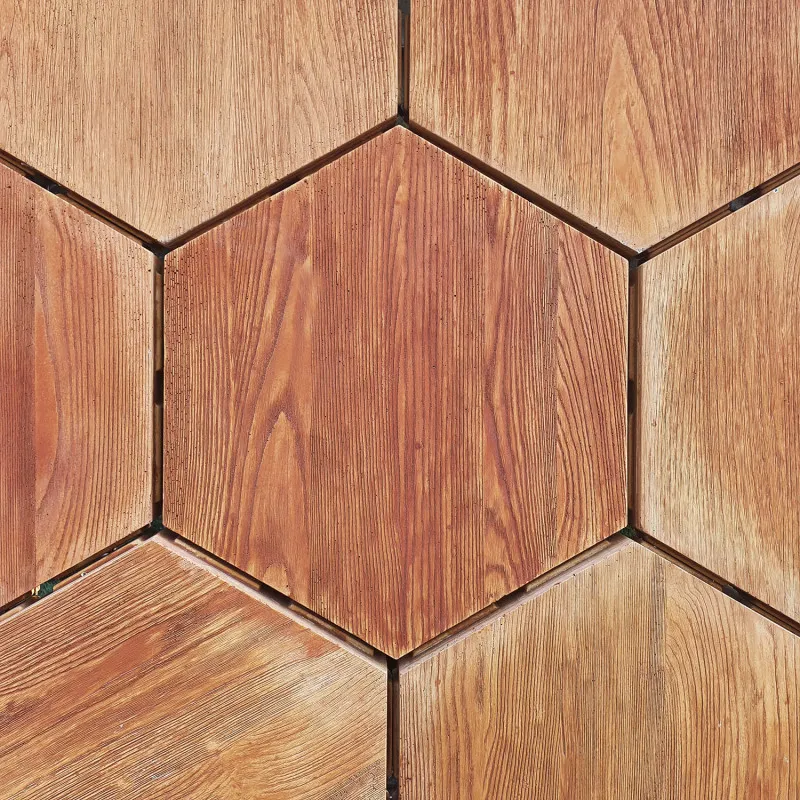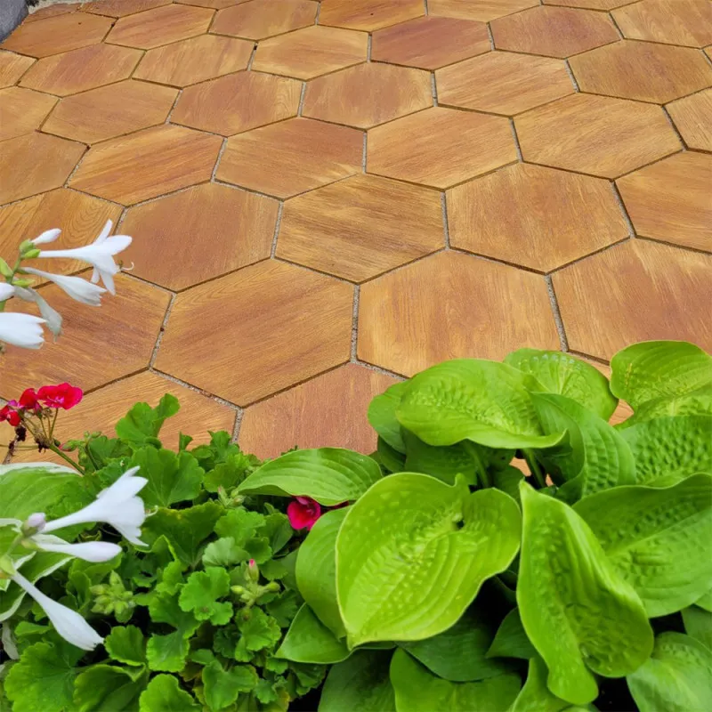 Тротуарная плитка Сота Форест — это удачное сочетание природной эстетики и прочности. Благодаря уникальной шестигранной форме и фактуре древесины, она отлично подходит для оформления современных пешеходных зон, садовых дорожек, террас или придомовых территорий. Имитируя дерево, плитка создаёт уют и тепло, при этом оставаясь устойчивой и долговечной.