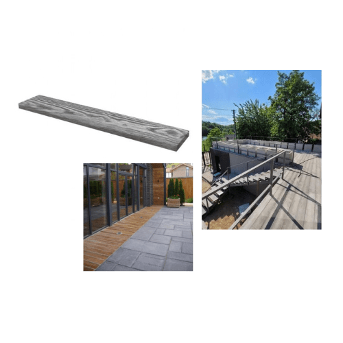 Террасная плитка размером 1300×150 мм — современное решение для обустройства частных участков, террас, дорожек и зон с активной пешеходной нагрузкой. Она сочетает природную красоту дерева с надежностью и долговечностью бетона.