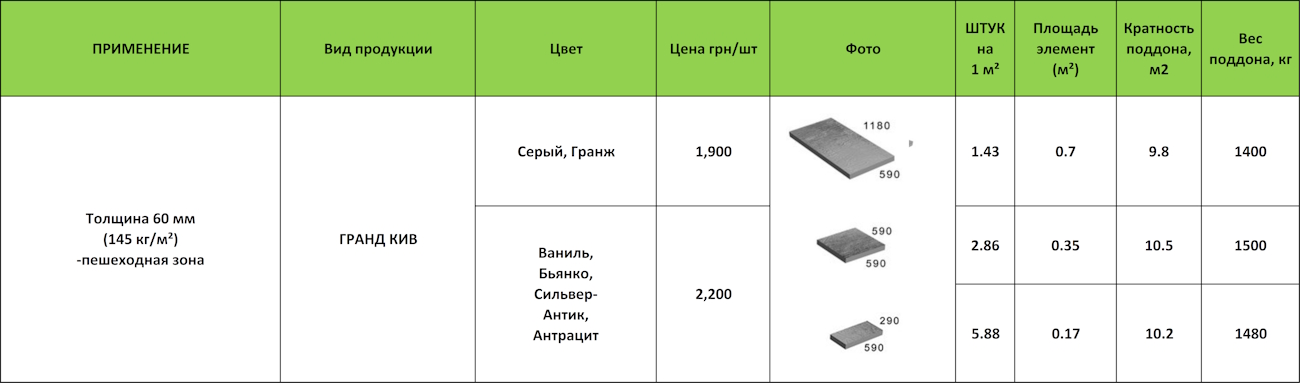 Плитка Гранд Кив имеет толщину 60 мм и рекомендована для мощения: