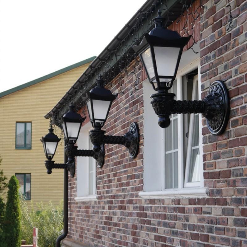 Крепятся на фасады домов, беседки или заборы. Обеспечивают точечное освещение входа в дом или зоны отдыха.