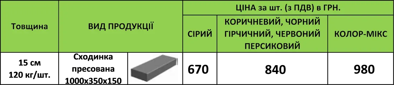 Пресовані сходи розміром 1000×350 мм — це ідеальне рішення для облаштування громадських, промислових і приватних об'єктів. Завдяки використанню високоміцного бетону та продуманій конструкції, такі елементи забезпечують високу міцність, зносостійкість і безпеку експлуатації протягом багатьох років.