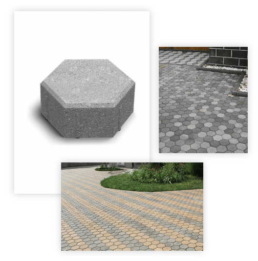 Шестикутна плитка створює оригінальний ефект бджолиних сот, що підходить як для ландшафтного дизайну в стилі модерн, так і для урбаністичних рішень. Завдяки чітким граням і фасці плитка виглядає акуратно та легко вкладається в геометричні візерунки.