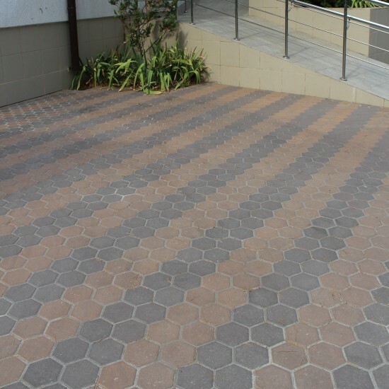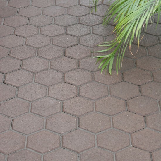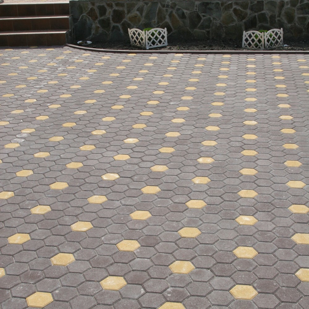 Шестикутна плитка створює оригінальний ефект бджолиних сот, що підходить як для ландшафтного дизайну в стилі модерн, так і для урбаністичних рішень. Завдяки чітким граням і фасці плитка виглядає акуратно та легко вкладається в геометричні візерунки.